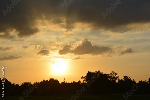 sunset, sky, cloud, sun, sunrise, landscape, nature, orange, evening, cloud, dusk, beautiful, blue, colours, yellow, light, twilight, dawn, red, tree, beauty, summer, view, tree, colourful
