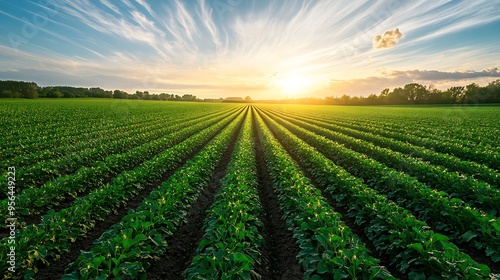 sunrise, inspirational, nature, agriculture, blue skies, environment, growth, sustainability, eco, farming, zen, golden hour, crop, optimism, dawn, outdoors, pastoral, daybreak, early morning, freshness, morning light, new day, peaceful, renewal, scenic, calmness