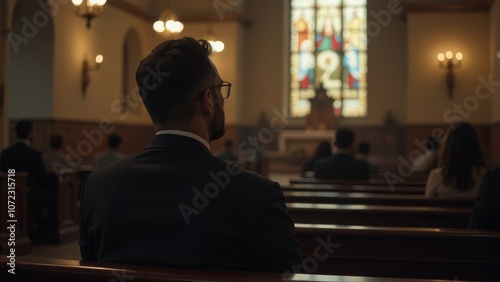 man, church, spirituality, peaceful, setting, contemplation, faith, reflective, worship, stained-glass, interior, prayer, religion, sacred, service, pew, architecture, calm, solemn, devotion, calmness, belief, tradition, candlelight, spiritual, sanctuary, altar, gathering, community, meditation, sharpened, introspection, reverence, holiness, congregation, observance, divine, mindful, ceremonial, quiet, harmony, solitude, sincerity, stillness, grace, piety
