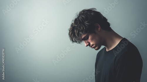 man, standing, alone, face, expression, hair, side, darkness, emotion, solitude, portrait, youth, casual attire, melancholy, sorrowful, profile, light, urban, modern, serious, thoughtful, contemplative, adult, feeling, pensive, isolated, body language, stillness, calm, minimalism, calmness, simplicity, quiet, vulnerability, nature, everyday, lifestyle, character, exchange