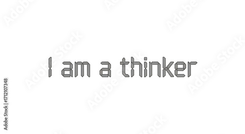 Thoughtful phrase "I am a thinker" displayed in distressed grey text on white.