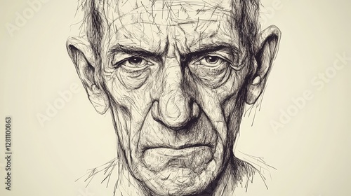 elderly, man, portrait, intricate, line, emotion, thoughtful, face, expression, aged, wrinkle, eye, feature, identity, character, masculinity, solemn, artistry, vignetting, drawing, realism, depth, shadow, light, texture, wisdom, contemplation, age, uniqueness, expressionism, human, life, detail, artistic, monochrome