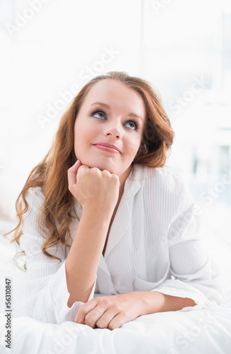 Thoughtful pretty woman lying on her bed