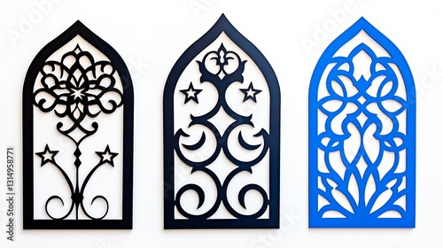 arch, arched, panel, cut-out, design, floral, geometric, intricate, motif, pattern, star, star, white, background, black, dark, blue, light, three, panel, decorative, artwork, craft, hand-made, home, decor, wall, art, lattice, filigree, gothic, stained, glasses, effect, window, window, frame, frame, template, element, abstract, modern, contemporary