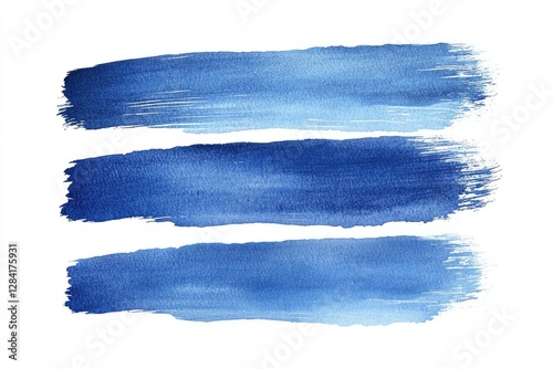 Three blue painted brush strokes against a white background