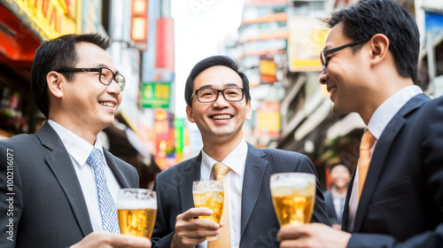 executive, business, drink, laughter, camaraderie, roadside, venue, urban, man, suit, goggles, beer, friendship, celebration, city, socialising, networking, thai, cheerful, professional, gathering, smile, nightlife, asian, group, casual attire, happy, conversation, event