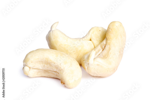 Three cashew nuts isolated on white