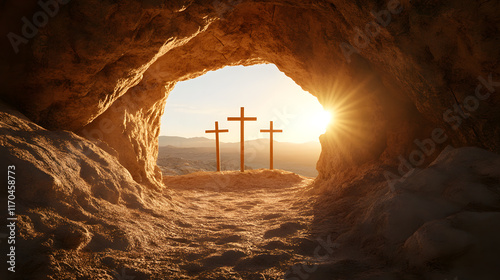 Three crosses are in a cave