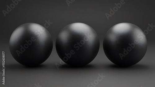 Three Dark Spheres Arranged in a Row On a Dark Surface