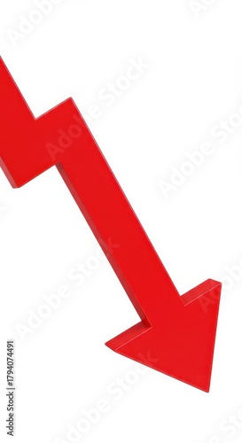 Three dimensional red zigzagging arrow points sharply downward against a white background