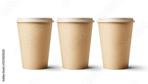 Three disposable coffee cups, studio shot, white background