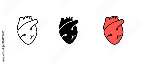 Three distinct heart symbols express various emotions through outline, black, and red designs.