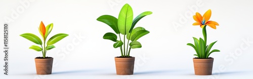 Three Distinct Potted Plants in Modern Style with Bright Colors