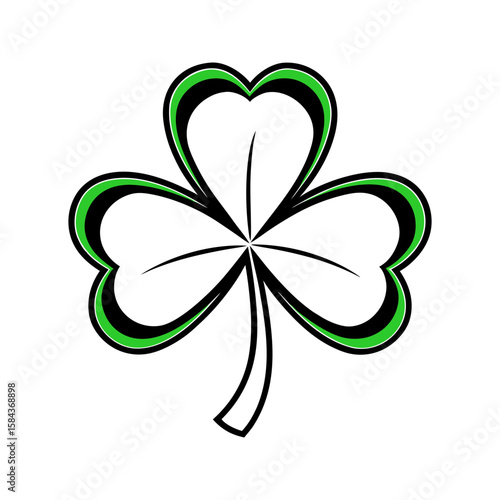 clover, shamrock, three, leaf, outline, vector, green, luck, symbol, plant, nature, holiday, decorative, graphic, flat, design, icon, foliage, lucky, irish, leaf, simple, white, shape, vignetting