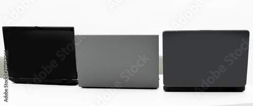 three open laptop in the workplace .isolated on white