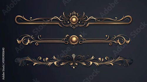ornate, gold, divider, flourish, floral, swirl, decorative, embellishment, design, element, graphic, style, illustration, vintage, retro, elegant, classic, luxury, abstract, pattern, border, frame, art, black, background, dark, gold, metal, texture, scroll, line, shape, intricate, detail, filigree, artwork, creative