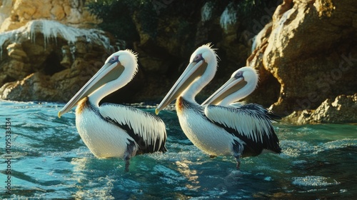 pelican, water, coast, bird, wildlife, ocean, sea, nature, animal, avian, photo, gold, hours, sunrise, sunset, rock, cliff, shore, beach, coastal, marin, fauna, of, prey, beak, wing, feather, beautiful, elegant, graceful, majestic, serene, calm, peaceful, tranquil, wild, natural, habitat, environment, scene, view, image