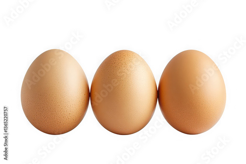Three perfect brown eggs nestled together, a simple yet elegant still life against a clean white background.