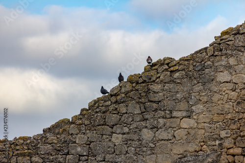 bird, pigeon, diagonal, wall, abstract, ancient, architecture, background, blue, castle, cloud, cumulus, europa, fluffy, historic, landmark, landscape, line, natural, nature, old, perch, puffy, rock, sky, stone, texture, tour tourism, holiday maker, travel, view, waiting, white