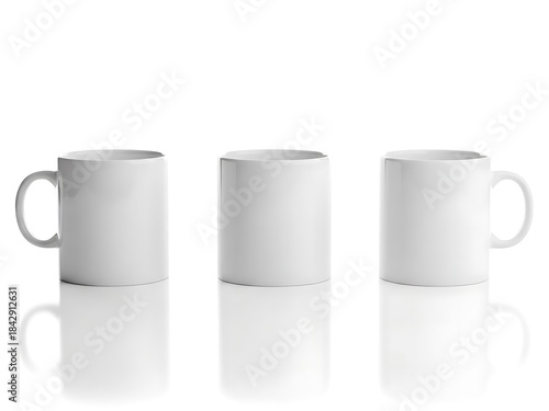 Three plain white mugs in a row