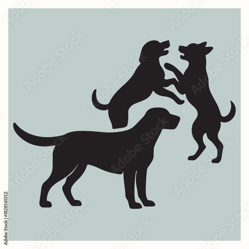 playing, vector, illustration, black, animal, pet, canino, graphic, icon, outline, park, garden, simple, logotype, design element, wildlife, domestic, art, friendship, playful, mammal, activity, minimalist