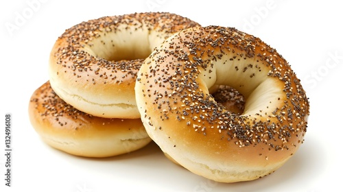 Three Poppy Seed Bagels isolated on white background