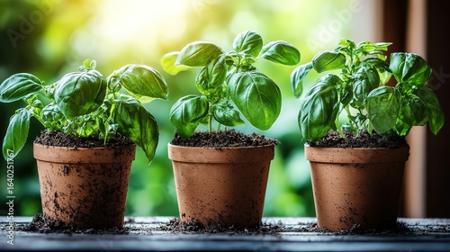 basil, plant, pot, potted, herb, green, terracotta, garden, gardening, growing, fresh, healthy, food, culinary, agriculture, flora, foliage, leaf, aromatic, spice, ingredient, tabletop, window sill, blurred background, sunlight, bright, vibrant, closeup, still life, organic, natural, vegetarian, vegan, cooking, greenery, herb, indoor, indoor, inside, home, kitchen, growth, cultivation