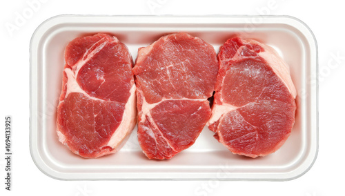 pork meat, chop, raw, meat, food, fresh, uncooked, protein, tray, cardboard box, grocery, market, retail, steak, pale, red, pink, slice, cut, butchering, preparation, cooking, dinner, lunch, cookery, nourishment, healthy, diet, lean, pinkish, unprocessed, organic, unadulterated, poultry, beef, animal, farm, produce, dietitian