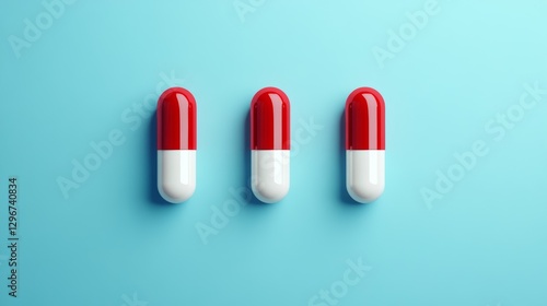Three red and white capsules on blue background.