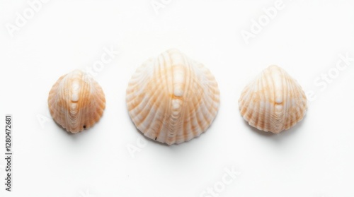 seashell, collection, three, varying, size, texture, arranged, pattern, nature, ocean, beach, coastal, marin, shell, natural, beauty, detail, closeup, photo, art, still life, object, background, white, light