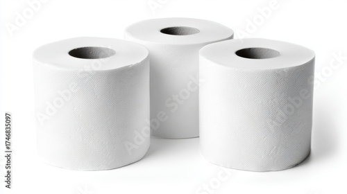 Three toilet paper rolls on white background, showcasing their clean and simple design