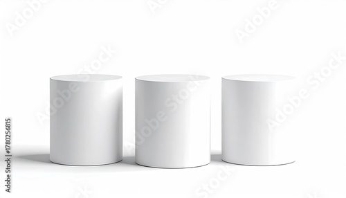 cylinder, white, pedestal, clean, isolated, simple, minimal, geometric, shape, display, platform, stage, round, object, blank, presentation, exhibit, empty, product, background, modern, studio, plain, design, basic, form, solid, geometry, smooth, light, shadow, template, surface, cylindrical, pristine, showroom, showcase, elegance, render, three-dimensional, structure, arrangement, trio, group, row, order, symmetry
