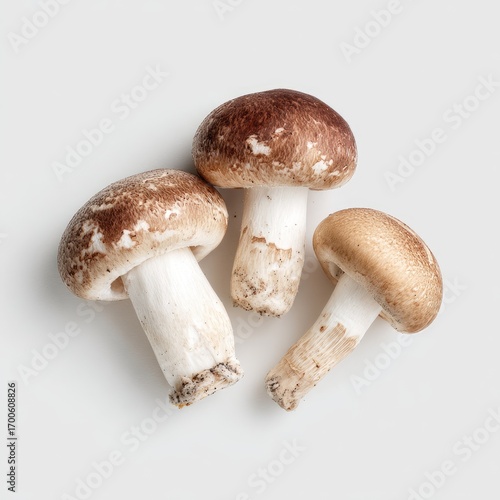 mushroom, fungal, food, fresh, edible, nature, organic, healthy, vegan, vegetarian, brown, tan, white, closeup, top, view, still, life, food photography, whole, cap, stem, three, group, pile, bunch, isolated, simple, delicious, tasty, freshness, natural, uncooked, raw, ingredient, cooking, receipe, nourishment, diet, health food, dietitian