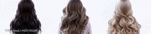 hair, woman, style, dark, blond, light, brown, wavy, curly, long, elegant, fashion, salon, beauty, professional, styling, back, rear, hair care, healthy, colours, highlight, treatment, volume, texture, glossy, shiny, smooth, curl, wave, sophisticated, backview, diverse, variation, coloration, hairdresser
