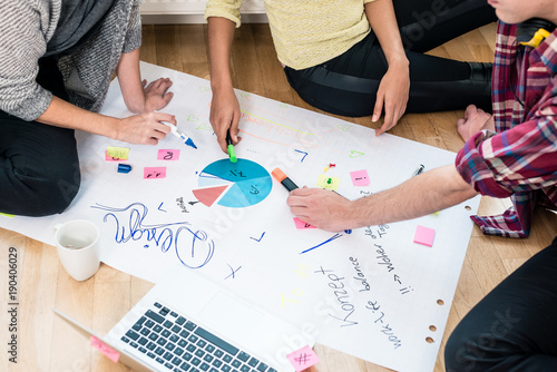 project, team, brainstorming, idea, man, woman, startup, business, young, three, teamwork, pie chart, analysing, creative, creativity, contribution, cooperation, student, people, internship, writing, session, sheet, floor, collaboration, chart, statistic, group, problem solving, woman, male, female, caucasian, indoor, laptop, large, modern, contemporary, office, work, unconventional, sitting, chequered, casual attire, paper, job, employee, working