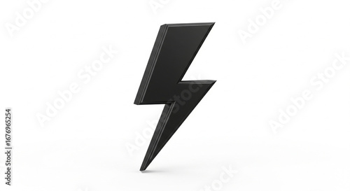 Three-Dimensional Black Lightning Bolt Symbol on Isolated transparent background