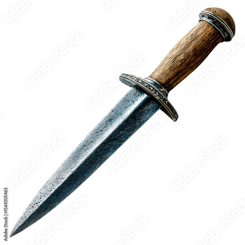 Thrusting weapon for viking craft concept. A vintage knife with a wooden handle and a gleaming blade.