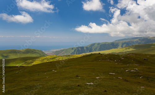 lake, tian, mountain, kyrgyzstan, mountain, range, massive, travel, view, panorama, panoramic, tour tourism, central, asia, east, eastern, nature, landscape, summer, cloud, day, saline, water