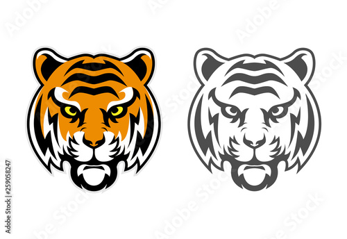 tiger, head, vector, cat, mascot, face, wild, illustration, cartoon, big, white, predator, carnivore, nature, wildcat, symbol, icon, male, animal, courage, sport, fur, power, background, wildlife, angry, mammal, logotype, teeth, zoo, felino, hunter, fang, roaring, style, isolated, tattoo, design, colours, abstract, black