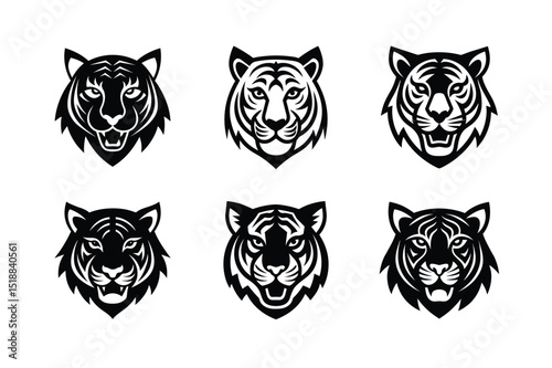 tiger, animal, head, face, wild, predator, felino, outline, silhouette, logotype, mascot, fierce, nature, jungle, hunter, symbol, vector, graphic, design, emblem, strong, stripes, beast, eye, fur, powerful, alert, black, cat