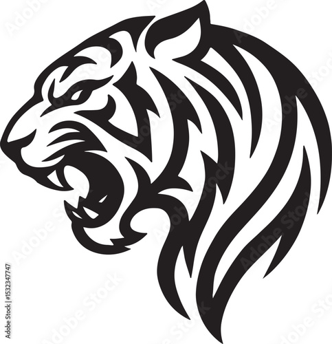 Tiger Head Silhouette: Bold, Fierce & Dynamic Wildlife Illustration
