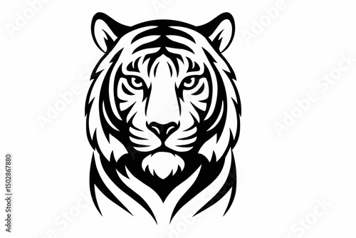 tiger, animal, vector, cat, wild, head, tattoo, illustration, wildlife, mammal, fur, face, bear, nature, silhouette, black, mascot, felino, predator, design, big, power, zoo, lion, animal