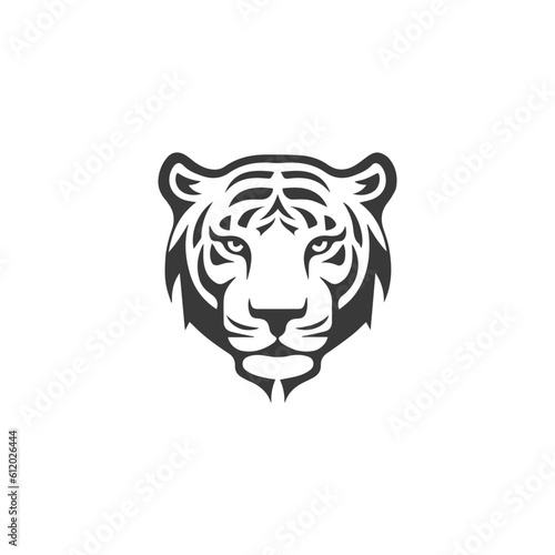 tiger, vector, logotype, illustration, head, black, white, art, design, animal, big, face, nature, wild, zoo