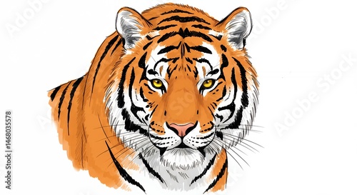 tiger, animal, wildlife, orange, black, stripes, mammal, portrait, closeup, head, face, eye, isolated, white, background, digital, illustration, drawing, art, nature, fauna, stripes, graphic, vector, design, image, print, character, clip art