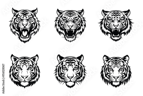 tiger, silhouette, bundle, vector, clip art, style, animal, logotype, icon, illustration, wild, predator, black, white, graphic, design, template, hunting, tattoo, outline, minimal, abstract, fierce, emblem, symbol, tribal, monochrome, printable, stencil, art, isolated, shape, digital, nature, forest, wildlife, jungle, felino, big cat, roaring, aggressive, beast, shadow, powerful, stock