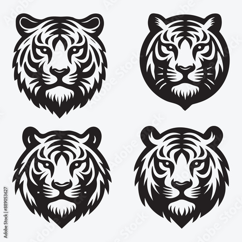 animal, animal head, cute, hand-drawn, illustration, line art, logotype, mascot, monochrome, safari, stencil, symbol, tattoo, tiger, wild, wildlife, zoo