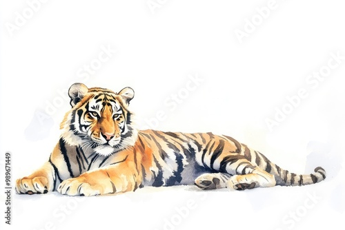 Tiger's Regal Repose: Capturing the power and elegance of a majestic tiger in a moment of serene repose. Witness the striking detail of its iconic stripes and piercing gaze.
