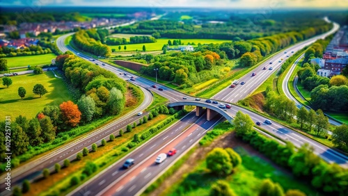Tilt-Shift Aerial View of Ecoduct Hoog Buurlo on Highway A1 in the Netherlands