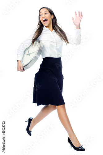 hours, hurry, late, meeting, minute, rush, stress, time, urgent, watch, adult, background, beautiful, business, businesswoman, tied-up, clock, concept, corporate, deadline, executive, girl, hispanic, holding, isolated, job, jump, latino, leap, looking, motion, people, person, portrait, professional, race, run, running, shirt, speed, studio, suit, symbol, white, woman, woman, work, men at work, worried, young