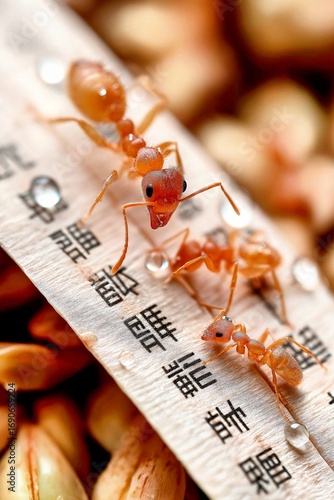 water droplets, grain, macro, insect, closeup, nature, detailed, unique, creative, scale, biology, environment, photo, studio, artistic, visual, organic, natural, tranquil, peaceful, serene, dew, bead, surface, clarity, vibrant, closeup, science, exploration, discovery, imaginative, surrealism, miniature, social, community, intricate, detail, amazing, fascinating, compelling, micro, sharpened, crisp, perspective, ant colony